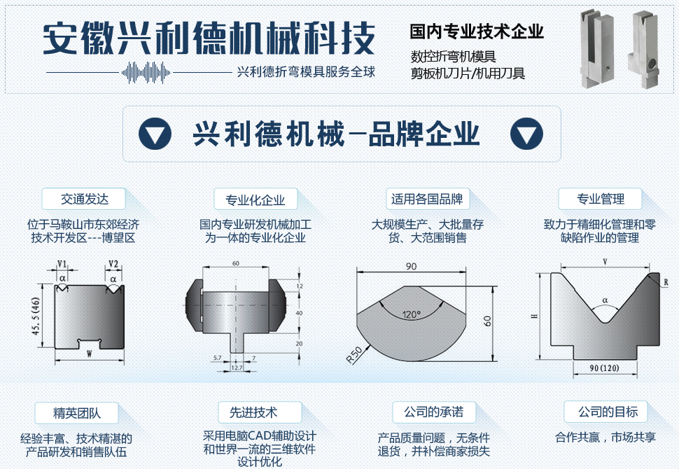 安徽興利德機械科技有限公司(簡稱興利德公司)成立于2008年, 位于馬鞍山市東郊經(jīng)濟技術(shù)開發(fā)區(qū)---博望區(qū),是一家國內(nèi)專業(yè),研發(fā) 生產(chǎn)制造數(shù)控折彎機模具、剪板機刀片、等機用刀具及機械 加工為一體的專業(yè)化企業(yè)。產(chǎn)品適用于各國品牌設(shè)備 ,如, AMADA(阿姆達(dá) )、KOMATS (小松)、LVD (比利時 )、BEYELER(貝勒) 、上海ACL、亞威、揚力、金方圓等, 經(jīng)過近幾年的快速發(fā)展,現(xiàn)已形成大規(guī)模生產(chǎn)、大批量存貨、大范圍銷售的良好局勢,除廣泛供應(yīng)國內(nèi)市場外,還隨配套機床一同銷往歐洲、美洲、東南亞等地。 興利德公司用現(xiàn)代企業(yè)的管理方法,致力于精細(xì)化管理和零缺陷作業(yè)的管理。立足于產(chǎn)品的質(zhì)量管理,以其優(yōu)秀的品質(zhì),新穎的設(shè)計,合理的價格,完善的售后服務(wù)贏得了廣大中外客戶的一致好評。 公司有一支經(jīng)驗豐富、技術(shù)精湛的產(chǎn)品研發(fā)和銷售隊伍,采用電腦CAD輔助設(shè)計和三維SolidWorks軟...更多>